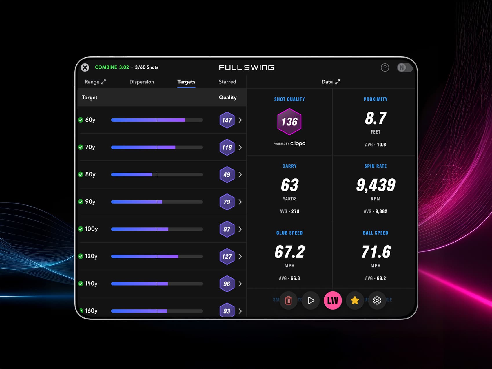 Full Swing and Clippd have partnered to bring you the ultimate Combine experience! Clippd is an Al golf technology that scores every shot a golfer hits to provide the most in-depth, objective analysis of their game - their strengths, weaknesses and opportunities to improve. FS Combine is powered by Clippd and their proprietary Shot Quality metric to take your practice to a new level.